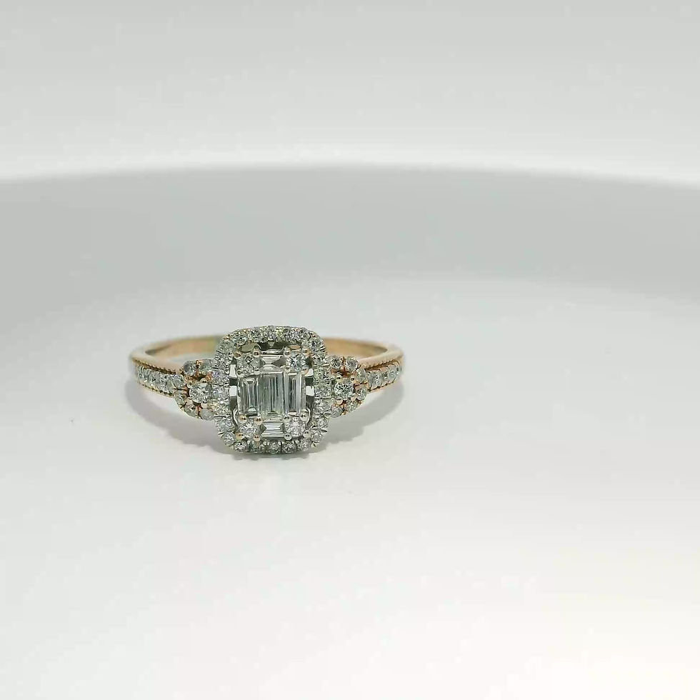 Emerald-Cut Diamond Composite Halo Ring in Rose Gold